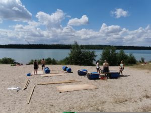 Getreu dem Motto „Floß und Leinen los“ bauen Sie in kleinen Teams von 4 bis 7 Personen ein hoffentlich schwimmfähiges Floß – bei der