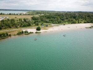 Der Favorit im Leipziger Neuseenland – der 730 ha große Störmthaler See. Entstanden ist der See durch die Flutung des Südostteils des ehemaligen Braunkohletagebaus Espenhain. Über 10 Jahre lang bis 2012 wurde der See vollständig geflutet – aber erst Ende April 2014 als Badegewässer freigegeben.